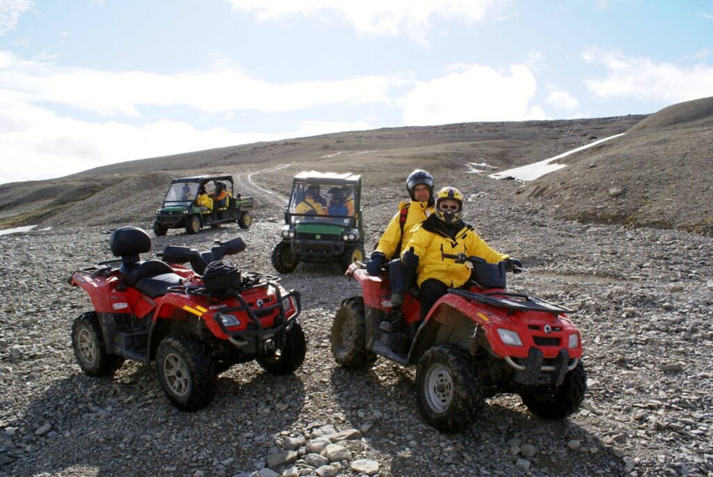 For example, on the ATV ride to Cape Anne, you will visit some ancient Thule sites, the Thule people were Bowhead Whale hunters and are ancestors to today’s Inuits. On this ride, while you will be gobsmacked not just looking at the scenic Arctic vistas and the monstrous icebergs, but also the ancient campsites and prehistoric whale bones.